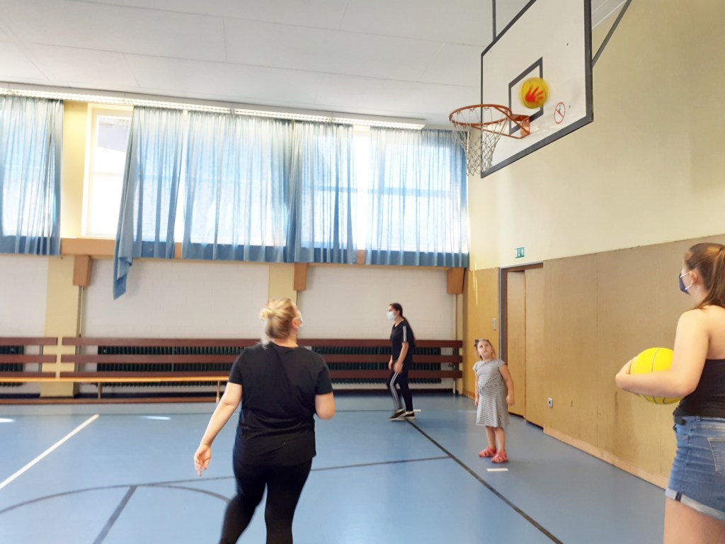 Erste Konditionsübungen, Geschicklichkeitsaufgaben bis hin zu den ersten Korblegern wurden mit unserer Trainerin von den New Basket Oberhausen schon geübt.