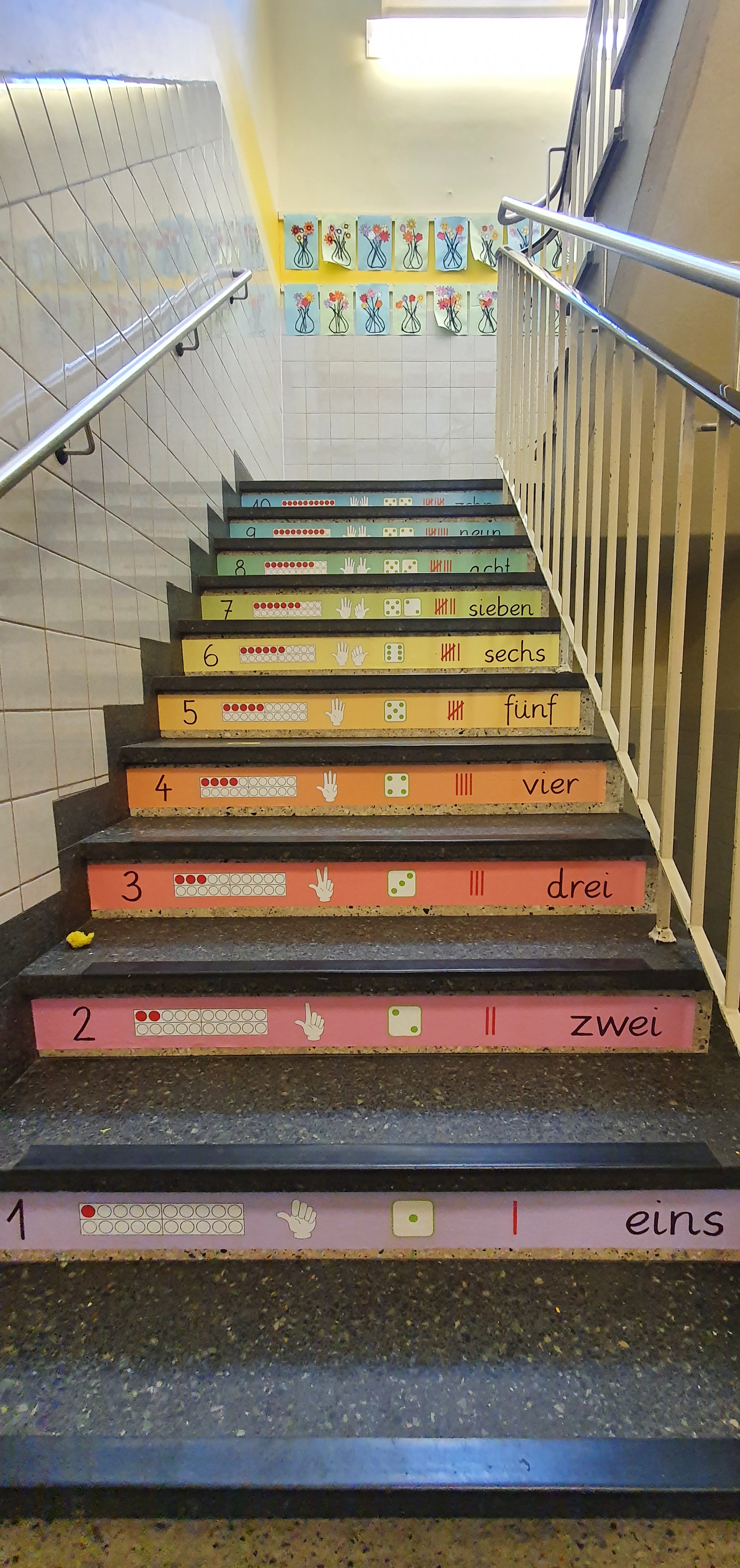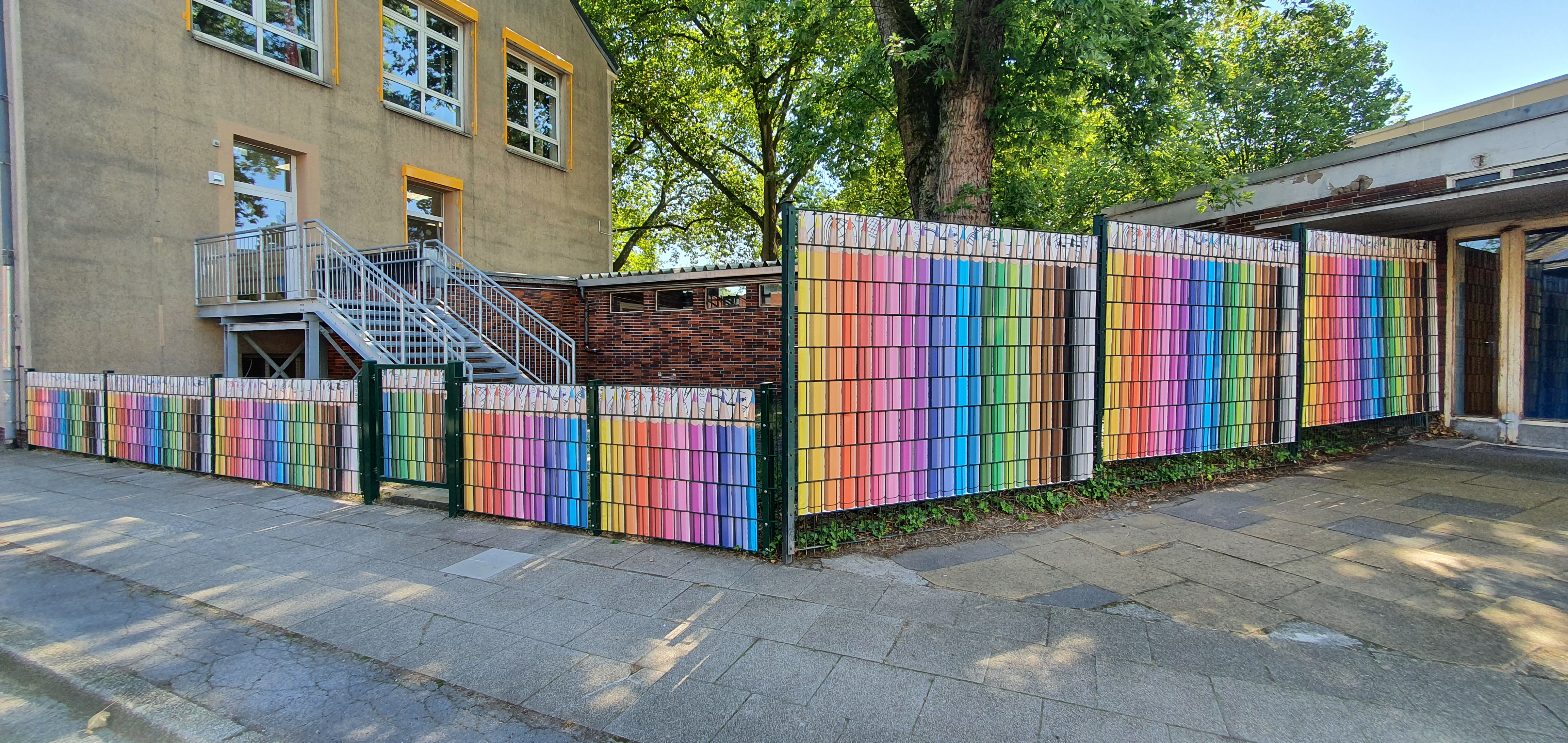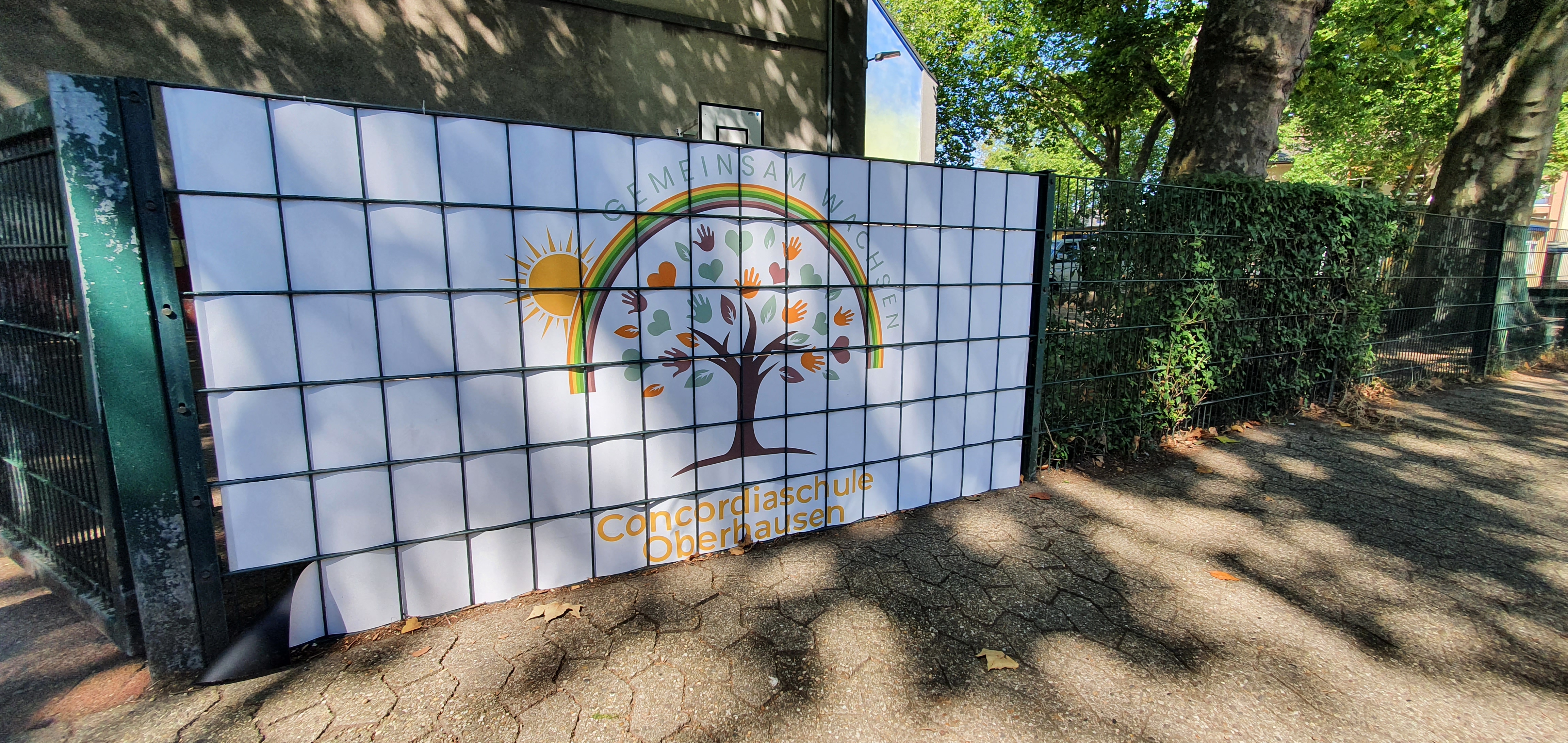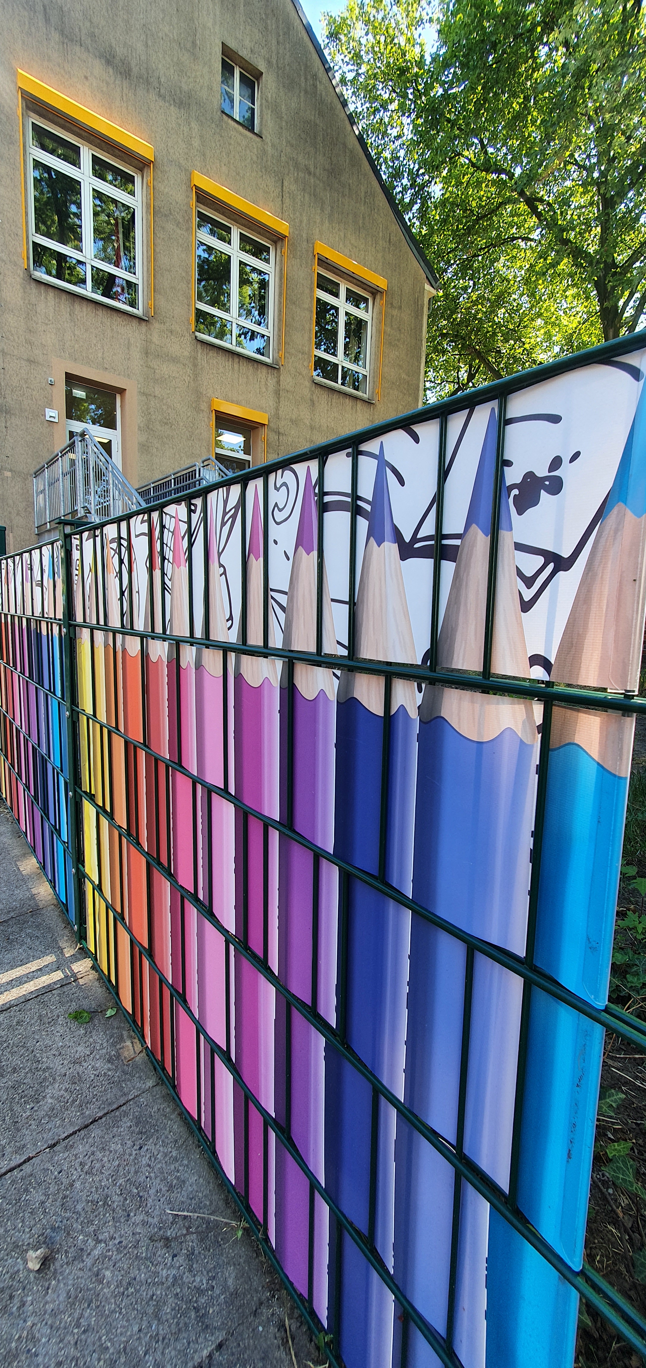 Obwohl vor kurzem noch Ferien waren und die Schule eigentlich „leer“ war, hat sich trotzdem einiges getan, vor allem optisch. Im Rahmen des Ferienprojekts haben wir drinnen und draußen an vielen Stellen der Schule um- bzw. neugestaltet. So wurden zum Beispiel die Treppen mit Zahlen-Aufklebern gestaltet, die es ermöglichen Treppen zu steigen und gleichzeitig dabei zu lernen. „Lernen mit jeder Stufe“ sozusagen. Auch wurde ein Treppengeländer mit wichtigen Werten, die für unsere Schule wichtig sind und die wir alle an der Concordiaschule verkörpern, beklebt. Passend zu unserer Vielfältigkeit haben wir auch die Zäune an der Weberstraßen mit bunten „Stiften“ gestaltet sowie den Zaun am Eingangstor mit bunten Richtungsschildern. Auch das große Zaunplakat mit unserem neuen Schulloge ist neu.