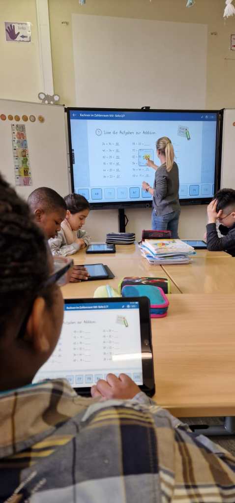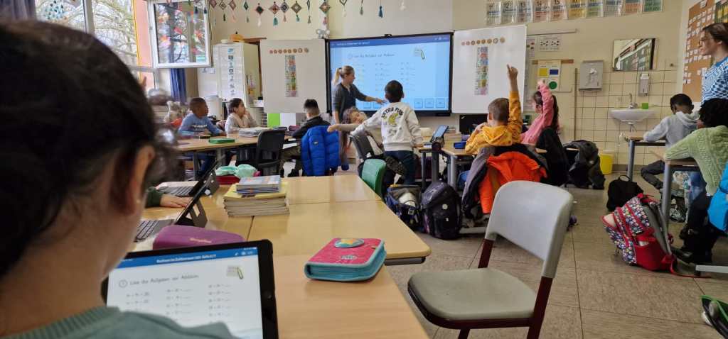 Um den diesbezüglich den Übergang von Grundschule zur weiterführenden Schule besser zu gestalten, hatten wir Lehrer aus verschiedenen weiterführenden Schulen bei uns zu Besuch. Sie konnten sich in der Koalaklasse einen Eindruck verschaffen, wie wir mit unseren Mediengeräten arbeiten.