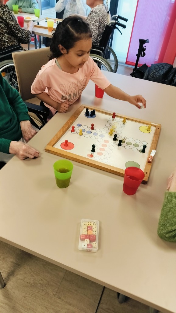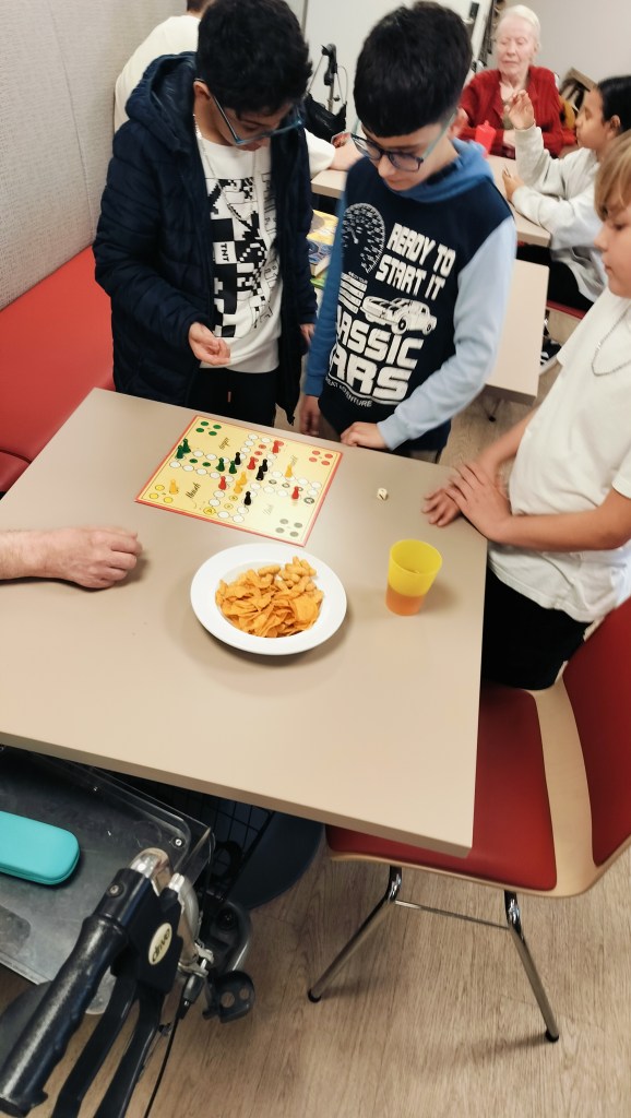 Neulich haben wir, die Kinder des Projekts „Ich-Du-Wir im Stadtteil“, und einige weitere Kinder uns auf den Weg gemacht. Ziel war das Seniorenzentrum Wernerstraße. Dort wurden wir bereits freudig erwartet. Mit den Bewohner*innen haben wir eine Stunde „Mensch-ärgere-dich-nicht“ und andere Spiele gespielt oder vorgelesen. Die Zeit verging wie im Flug. Am Ende waren wir uns von jung bis alt einig – solch eine Begegnung ist zu wiederholen. Die nächsten Termine sind bereits in Planung.