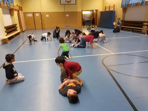 Man nehme ein paar Kindergartenkinder und ein paar Grundschüler, packe sie in eine Turnhalle und schon entsteht eine bunte TurnstundeJ.