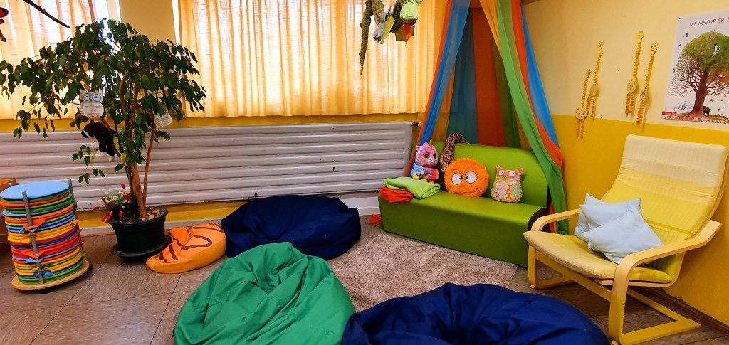 Besonders stolz sind wir auf unsere gut ausgestattete Schulbücherei. Hier können die Kinder regelmäßig stöbern und es sich auf den kuscheligen Sofas und in den Liegeecken mit ihren Büchern bequem machen. Natürlich können sie die Bücher auch ausleihen und in den Klassen oder zu Hause weiterlesen. Durch die große Unterstützung der Eltern haben wir jede Pause geöffnet. Jeden Dienstag und Donnerstag verleihen die Schüler der 4. Klasse in der Bücherei AG unter Aufsicht von Oma Rosi die Bücher.